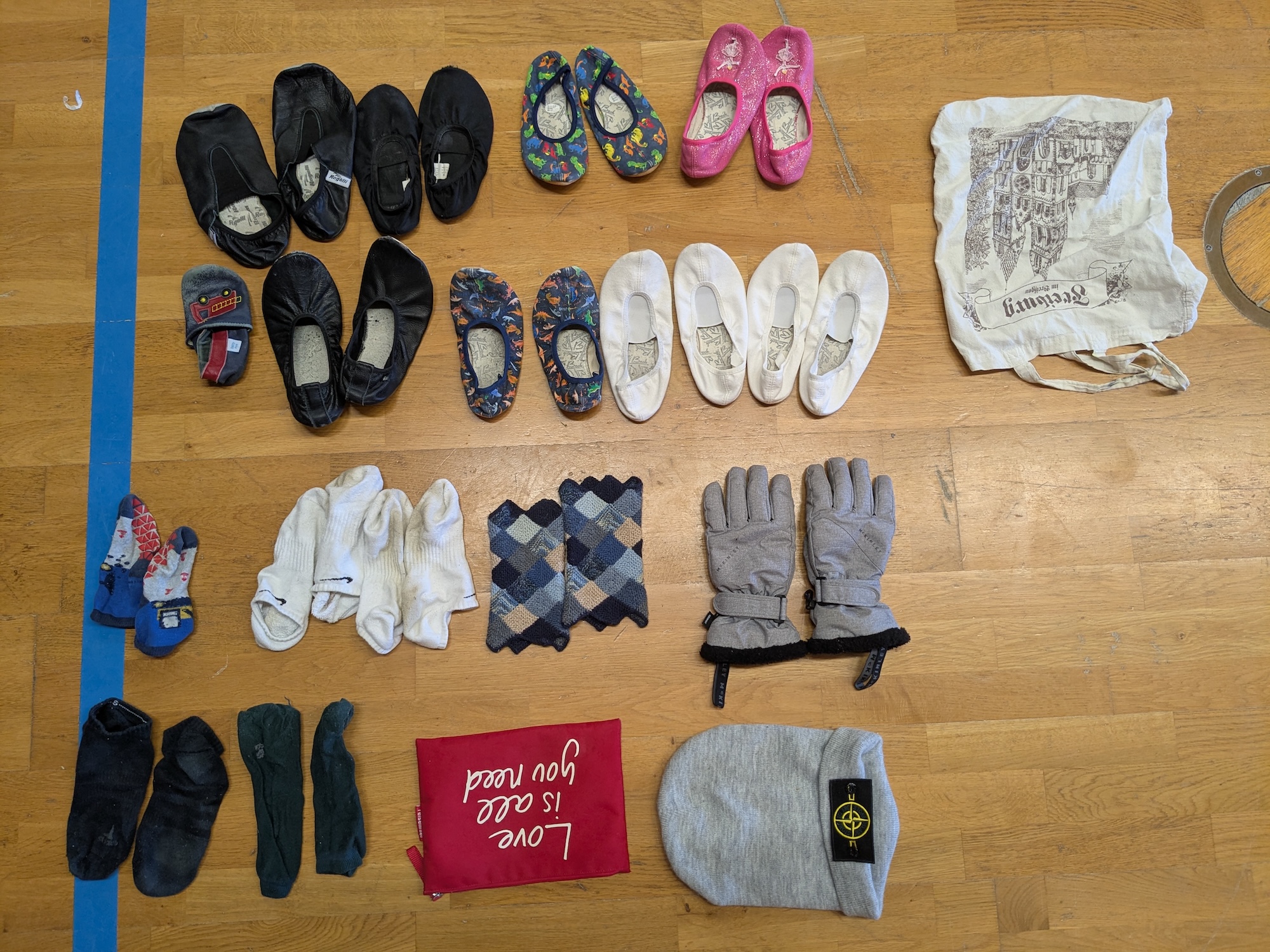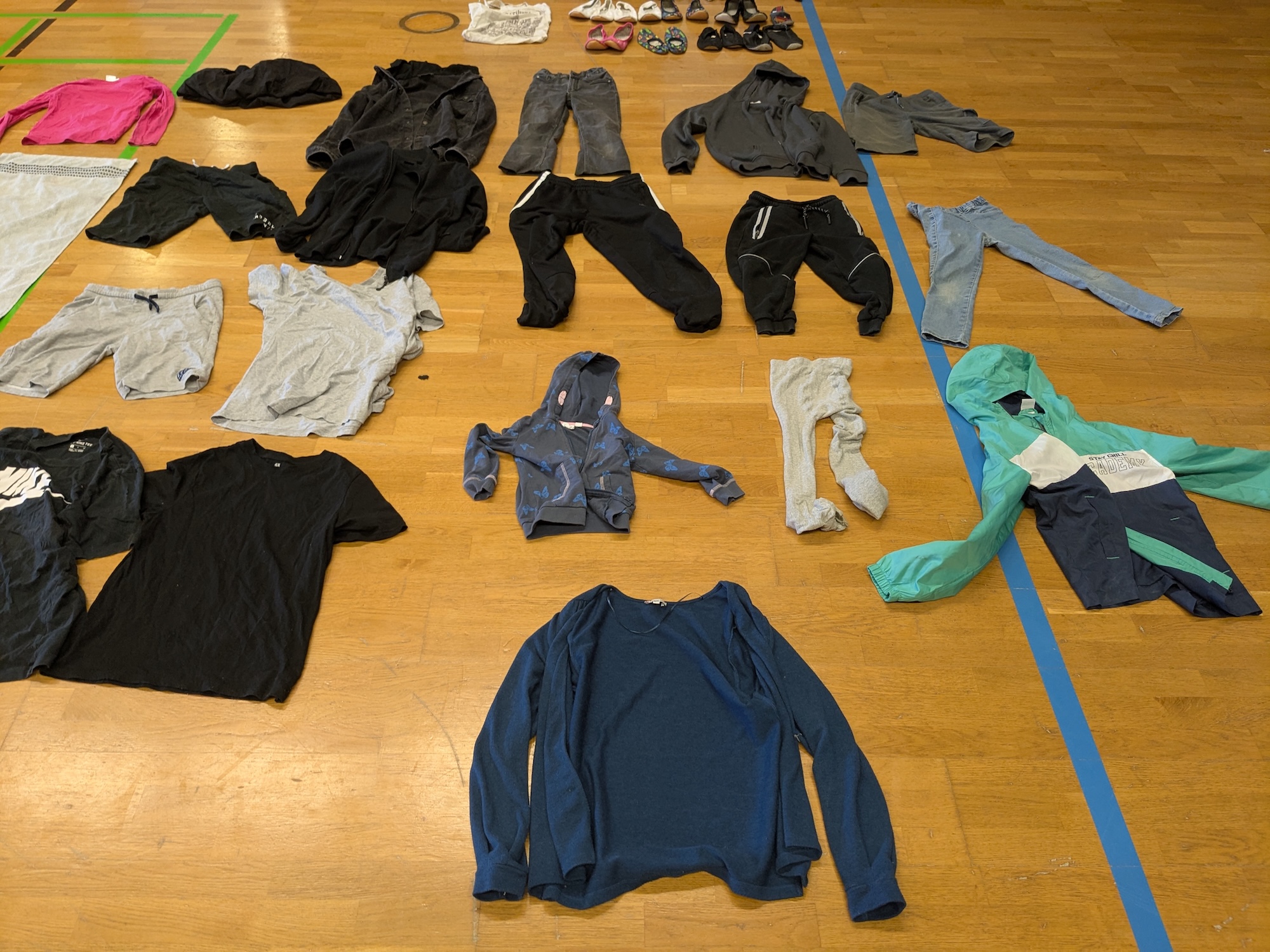 In der Halle werden immer wieder Kleidungsstücke und andere Gegenstände vergessen und über eine längere Zeit auch nicht mehr abgeholt. Da hat sich mittlerweile eine erstaunliche Auswahl angesammelt!