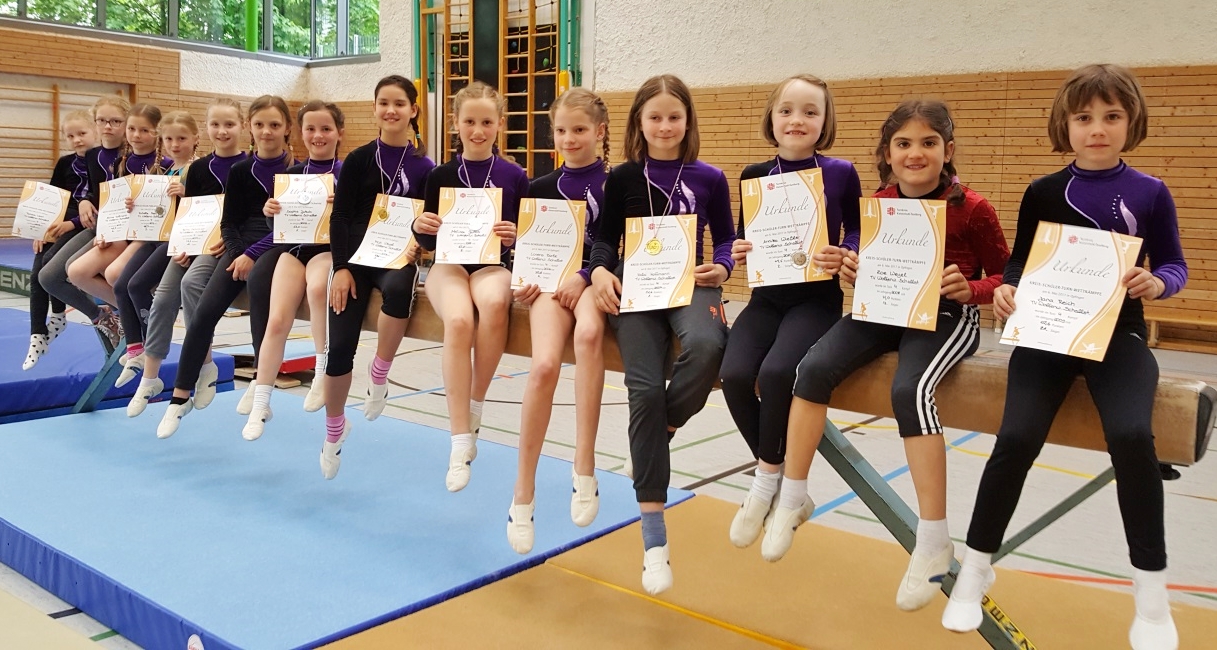 Am 06.05.2017 fanden die diesjährigen Kreisschülerturnwettkämpfe der Mädchen in Opfingen statt. 17 Turnerinnen starteten im A-Wettkampf (leichtere Übungen) und 7 Turnerinnen im B-Wettkampf (schwerere Übungen).