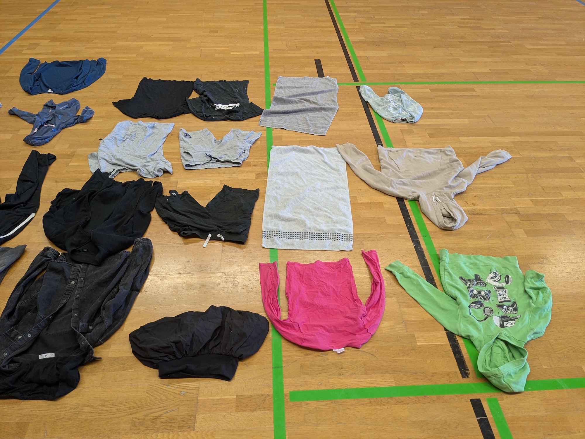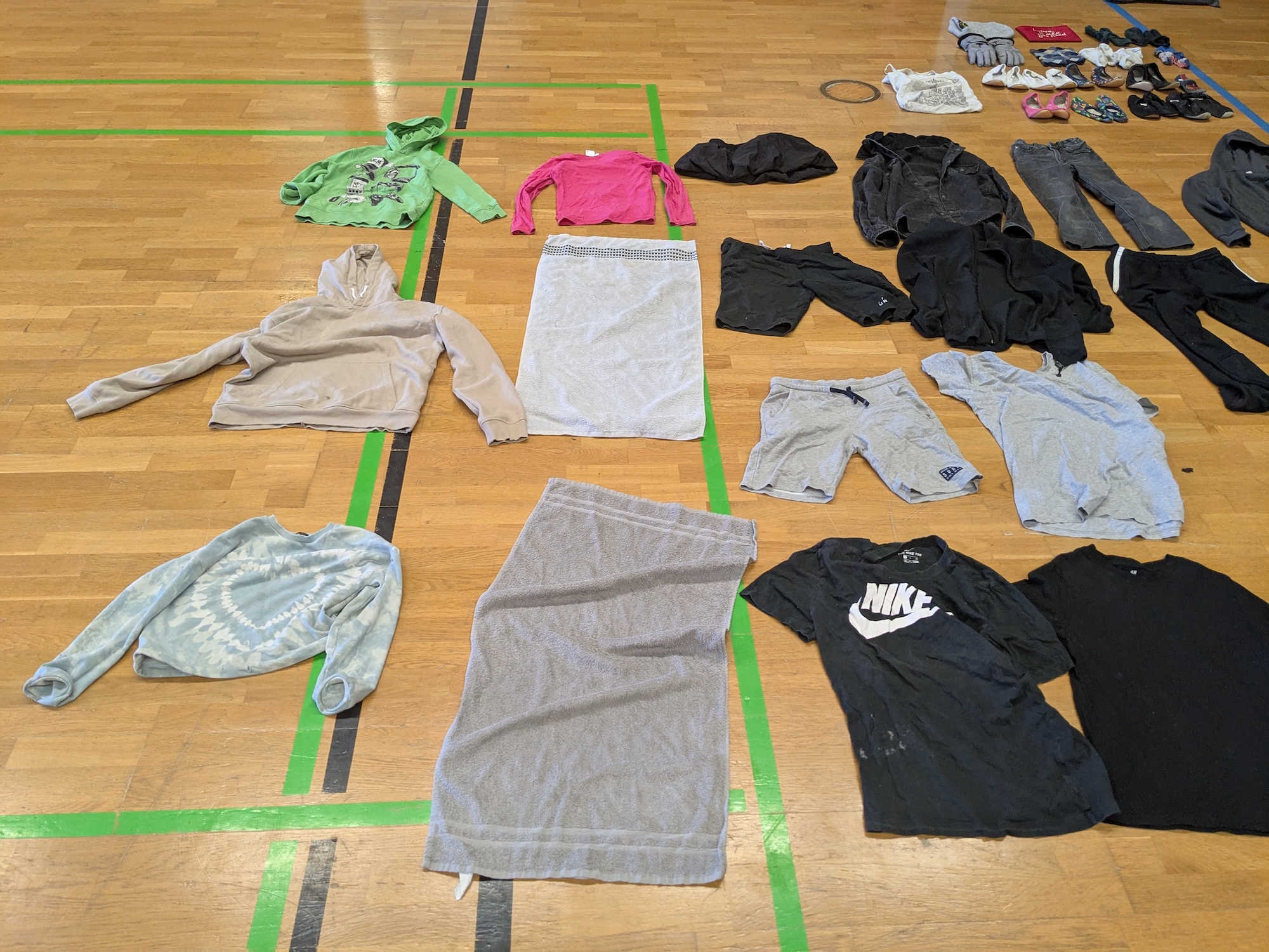 In der Halle werden immer wieder Kleidungsstücke und andere Gegenstände vergessen und über eine längere Zeit auch nicht mehr abgeholt. Da hat sich mittlerweile eine erstaunliche Auswahl angesammelt!